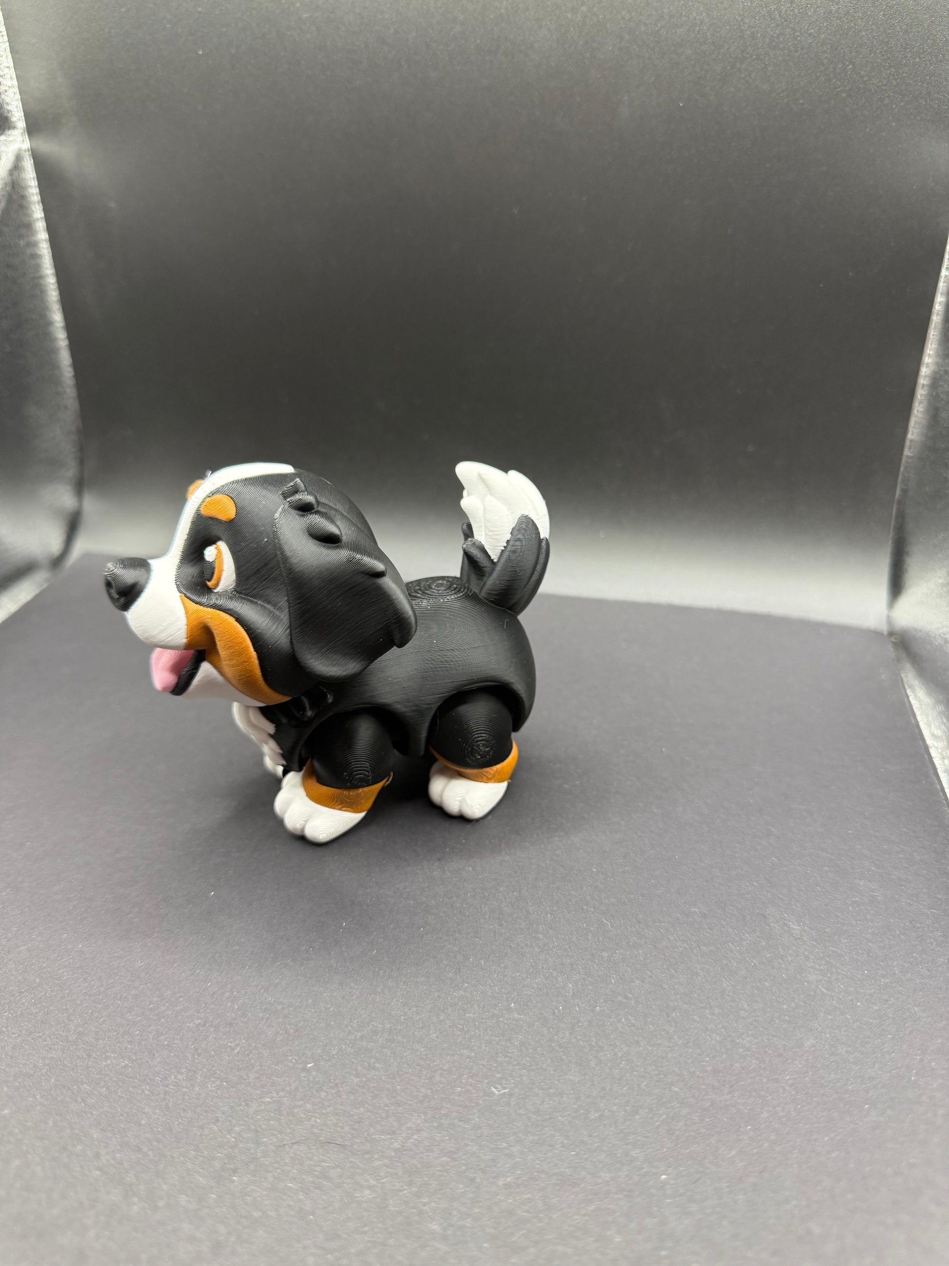 A playful and fun Bernese Mountain Dog figure featuring flexible arms and legs for expressive posing. Crafted with charming detail, this adorable pup makes a perfect addition to any collection or home décor. Thoughtful and heartwarming, it also makes a special gift for any dog lover.